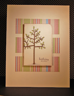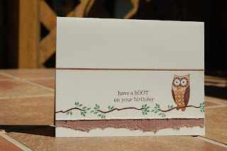 Well, clearly I've been into my Hero Arts stash! This image I recieved in a Blog Candy win and I love this guy!! I stamped the branch a few times and then placed him on top. While I added the ink colors to the stamp for the branch, the owl is an outline image so I colored him in with various Copic markers.